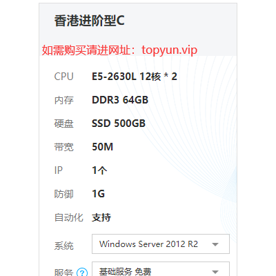 香港50M大带宽服务器24核64G物理机仅999元 香港50M大带宽物理服务器租用,24核CPU、64G内存、500G固态硬盘、50M独享带宽、1个独享ip、1G防御,仅999元/月。新老客户共享,续费同价,安全稳定,是游戏、网站、APP、SAAS软件等应用服务器的优选。 (提示:把中文地址粘贴到地址栏即可进入,进入之后找到中国香港-BGP-2线路-香港进阶型C即可) TOP提供的香港50M独享大带宽,是香港优质多线BGP网络,无论大陆或者海外访问,都有稳定高速的网络速度。并且配合24核E5处